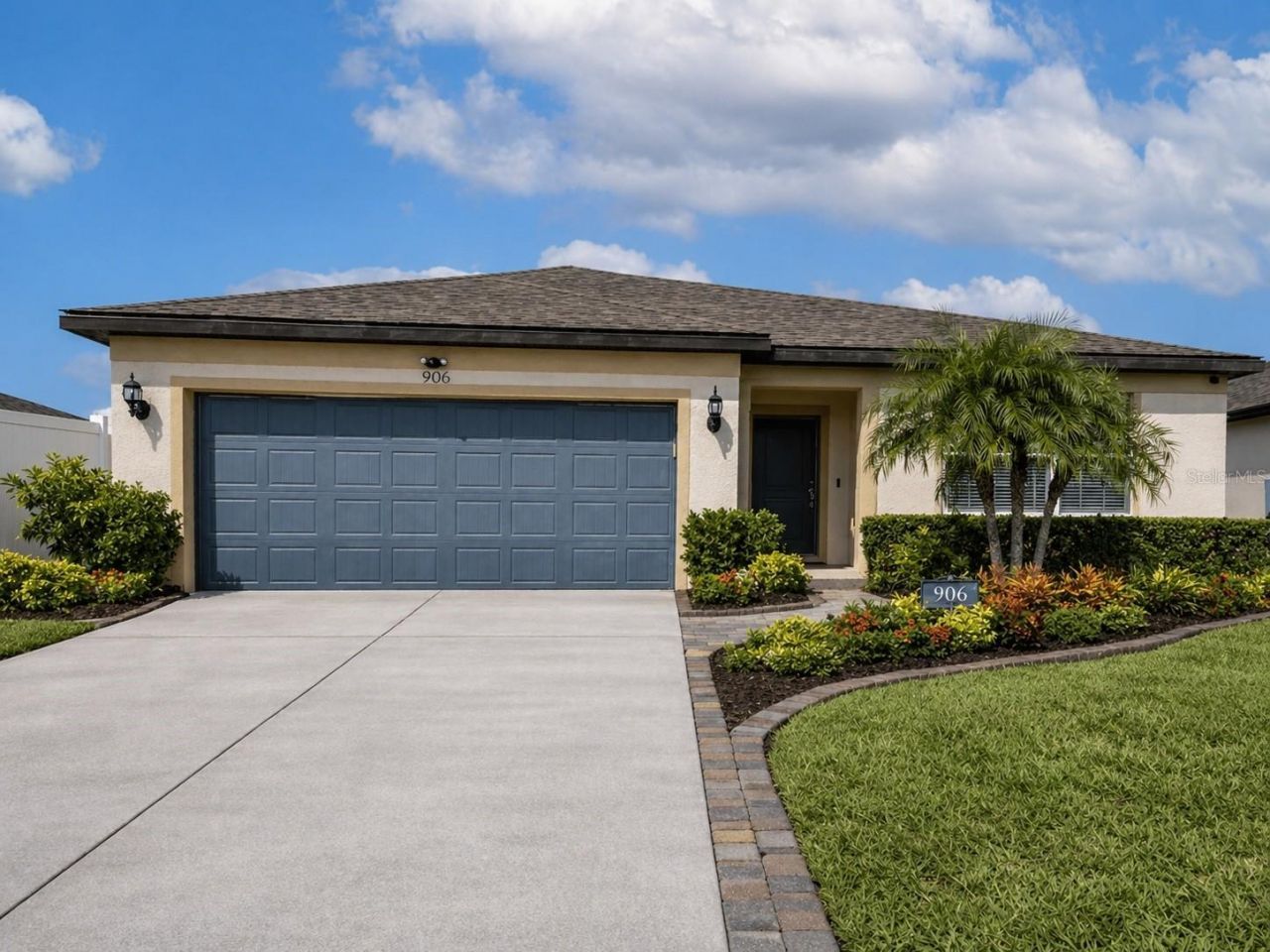 One or more photo(s) has been virtually staged. Welcome to 906 Swaying Sawgrass Avenue in Ruskin, Florida, a 2021 built home offering over 2,144 square feet of thoughtfully designed living space in FLOOD ZONE X with NO REQUIRED FLOOD INSURANCE.This 3 bedroom, 2 bath home with a FLEX ROOM OR HOME OFFICE sits on a peaceful POND LOT with water stretching east to west behind the property, creating a serene backdrop for daily living. A LARGE SCREENED LANAI allows you to enjoy the view year round while capturing natural light from the north south orientation.For VA eligible buyers, this home features an ASSUMABLE VA LOAN at 2.8 percent with approximately 238,000 remaining, a rare opportunity in today's market that may significantly reduce monthly payments compared to current rates.Built in 2021, the home offers TILE THROUGHOUT MAIN AREAS, CARPET IN BEDROOMS, DARK WOOD CABINETRY, and QUARTZ COUNTERTOPS throughout. SOLAR PANELS help offset energy costs. The property is also covered by a 10 YEAR STRUCTURAL WARRANTY and remaining 5 YEAR WATER INTRUSION WARRANTY through 2026. The home is constructed on a recessed foundation designed to direct water away in the event of intrusion.The HOA is just 84 per year. Located LESS THAN ONE MILE TO A BOAT DOCK with access to the GULF OF AMERICA, this home blends pond front tranquility with boating lifestyle convenience.For buyers relocating from higher cost states, first time buyers, and veterans seeking value in the TAMPA BAY AREA, this property offers location, water proximity, and financing advantages rarely found in new construction.Schedule your private showing to explore the opportunity at 906 Swaying Sawgrass Avenue in RUSKIN FLORIDA.